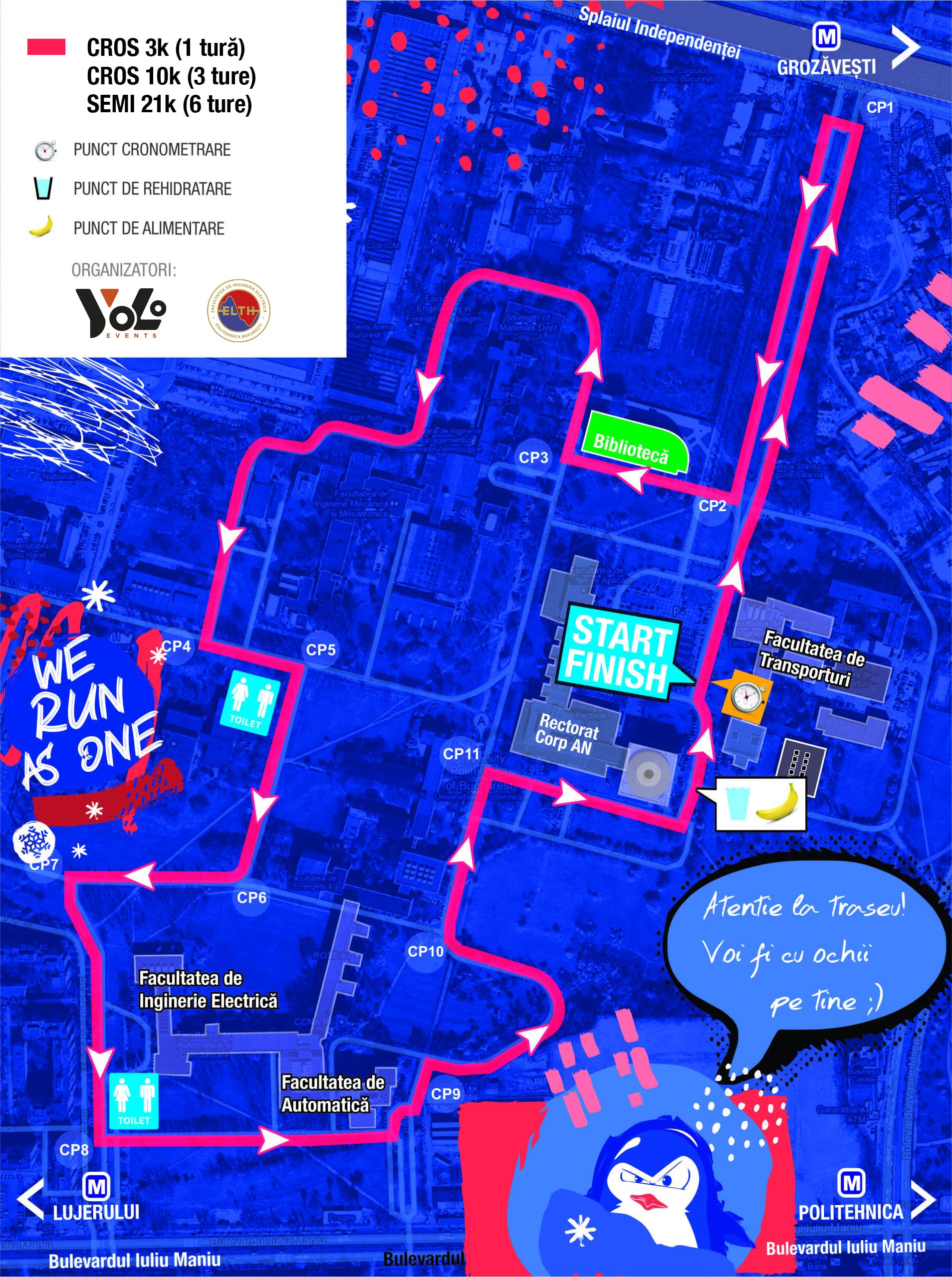 Bucla are zona de start/finish în fața facultății de Transporturi.